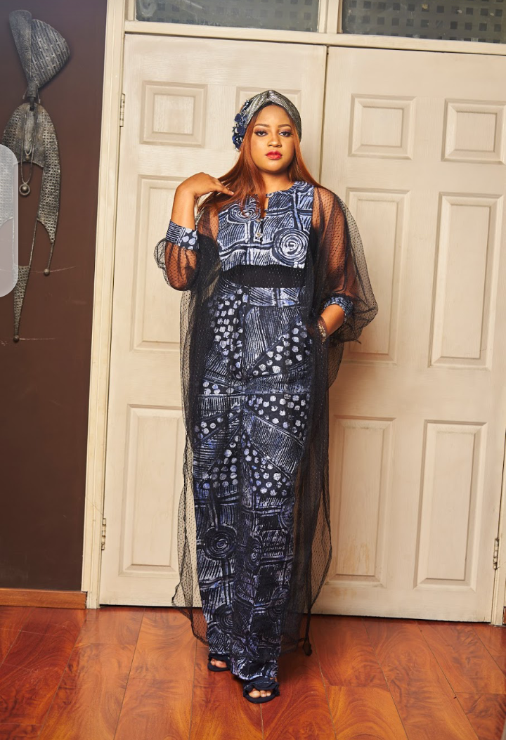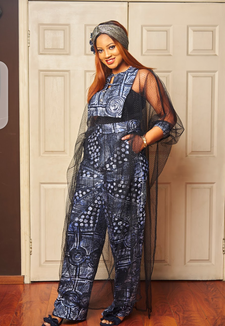 What beats a kaftan made with tulle for that silhouette look and adorable vibe,search no more this tulle kaftan top and batik pant set is such a versatile piece just create your style.