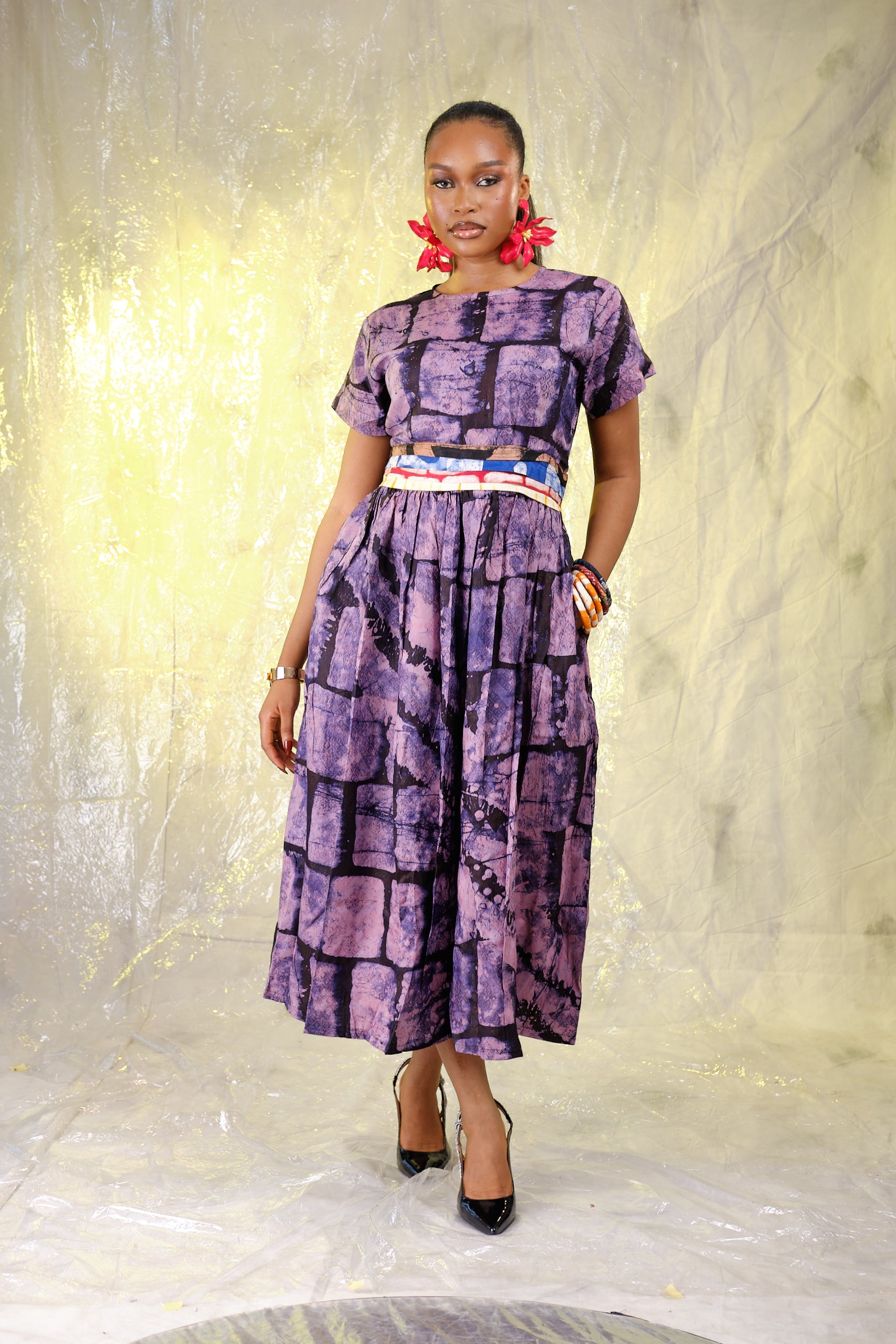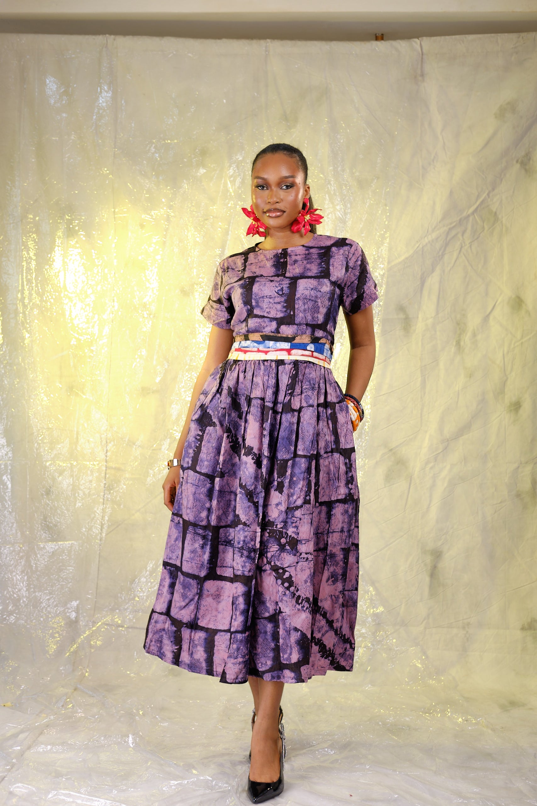 This Adire pleated midi dress is designed for effortless elegance, blending structure with soft movement for a refined everyday look. Perfect for workdays, events, or special outings, it offers comfort, detail, and timeless style.