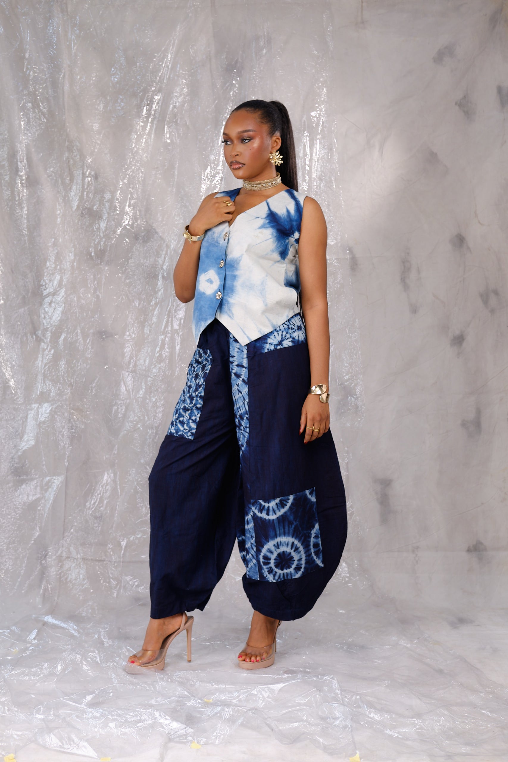 This Kano tie-dye two-piece set is designed for ease and modern elegance, blending handcrafted detail with a relaxed yet polished silhouette. Ideal for workdays, creative meetings, or casual outings, it delivers comfort without sacrificing style.