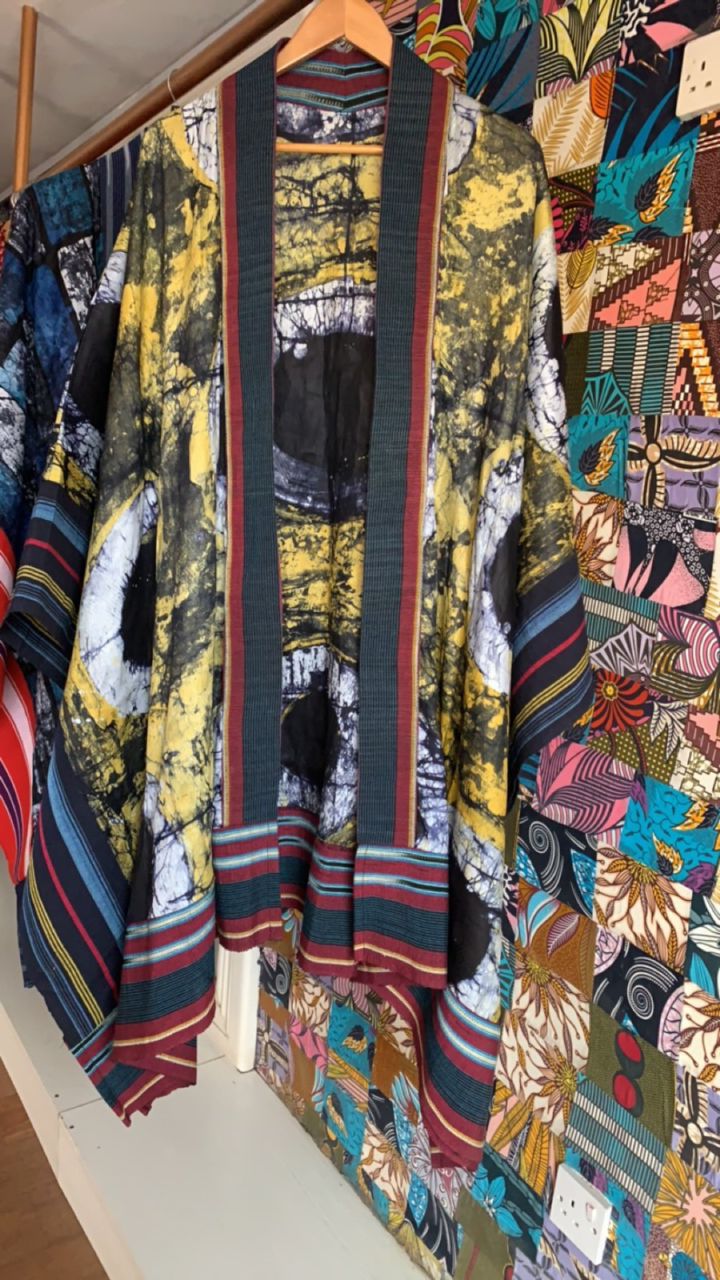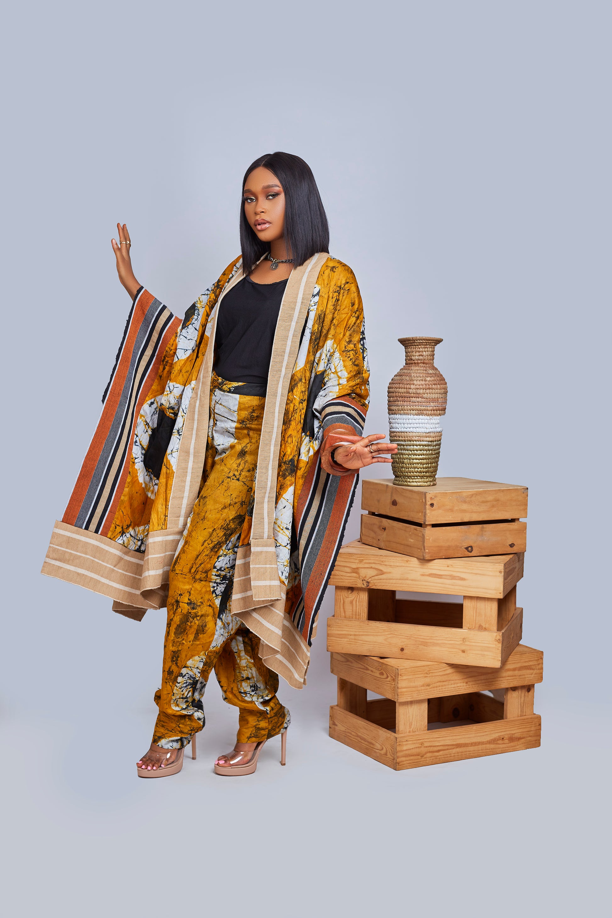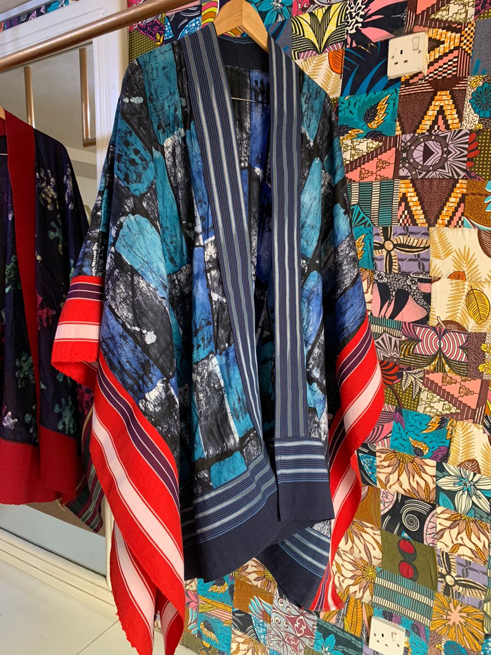 Enhance your wardrobe with our Araoluwapo aso oke cape, handwoven with exquisite aso oke fabric and adire. This one-size-fits-all cape is perfect for adding a regal and elegant touch to any outfit. Upgrade your style with this unique and timeless piece.